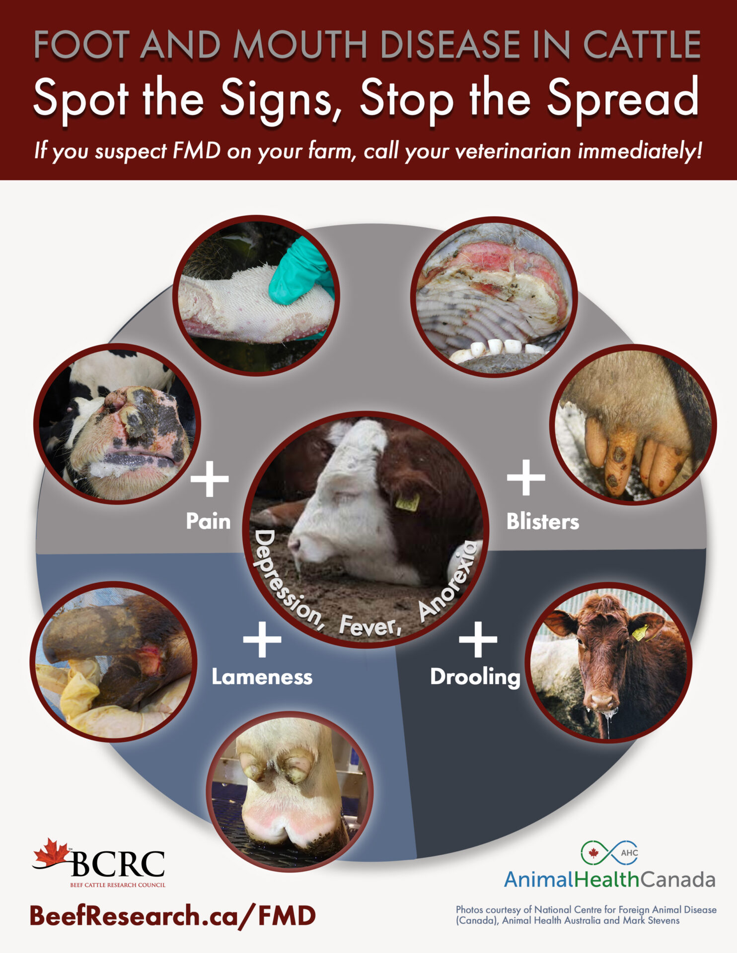 Foot and Mouth Disease is a highly infectious virus that has serious consequences for the beef industry and populations of beef cattle and other cloven-hoofed animals worldwide, including severe economic and animal health impacts. Canada currently has an FMD-free without vaccination trade status and maintaining this status is the responsibility of all sectors within the industry.