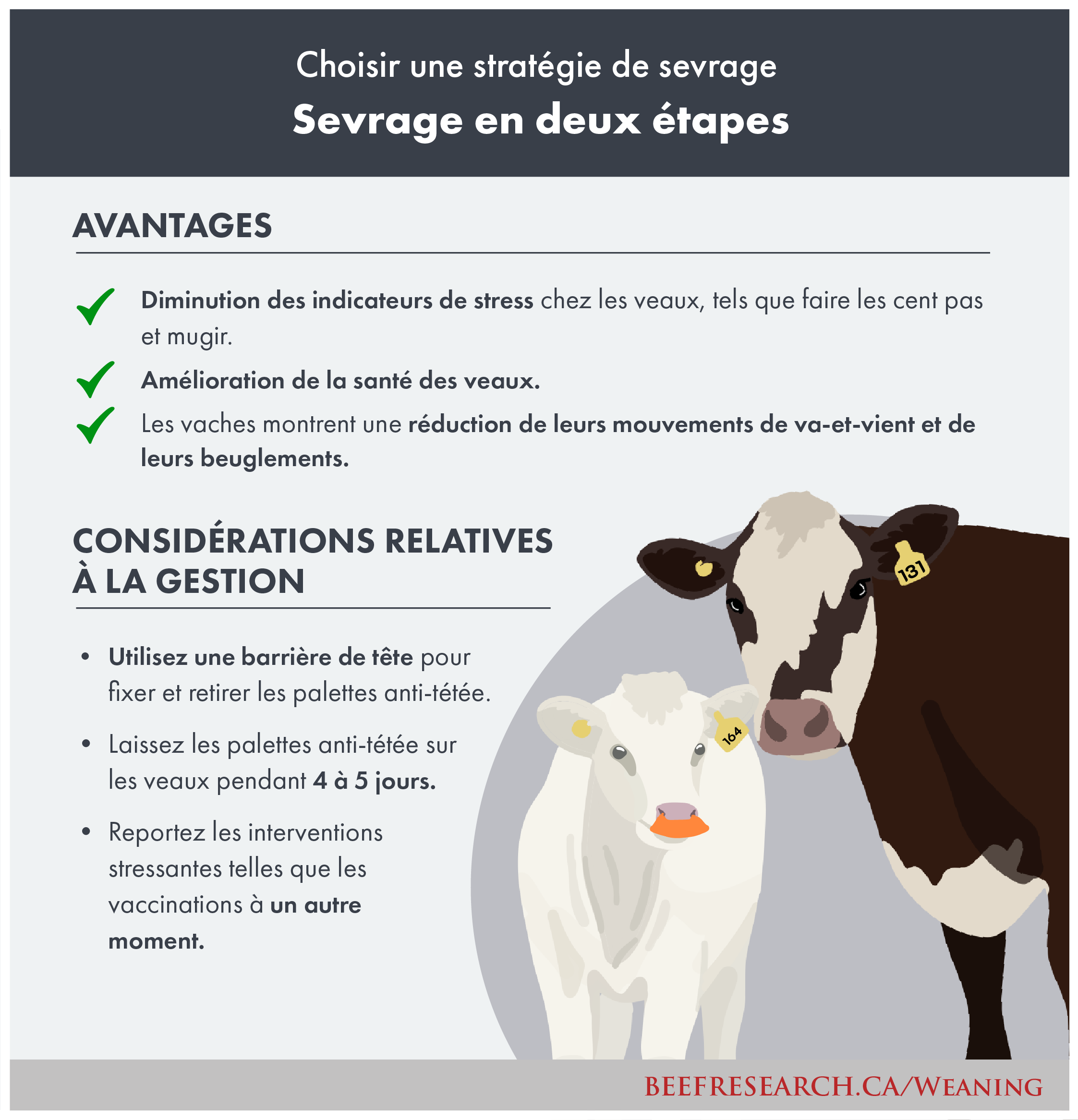 La méthode de sevrage en deux étapes nécessite davantage de manipulations et de planification, mais peut offrir la transition la plus douce tant pour les veaux que pour les vaches.