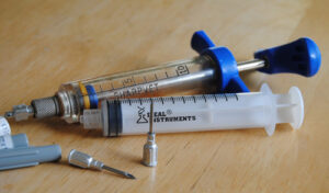 Les aiguilles abîmées, pliées et émoussée augmenteront également les probabilités de dommages et d’abcès. Ceci peut être évité en utilisant une aiguille jetable de qualité qui peut être changée dès qu’un dommage est évident, soit toutes les 10 à 15 injections et chaque fois que vous utilisez un flacon à doses multiples.