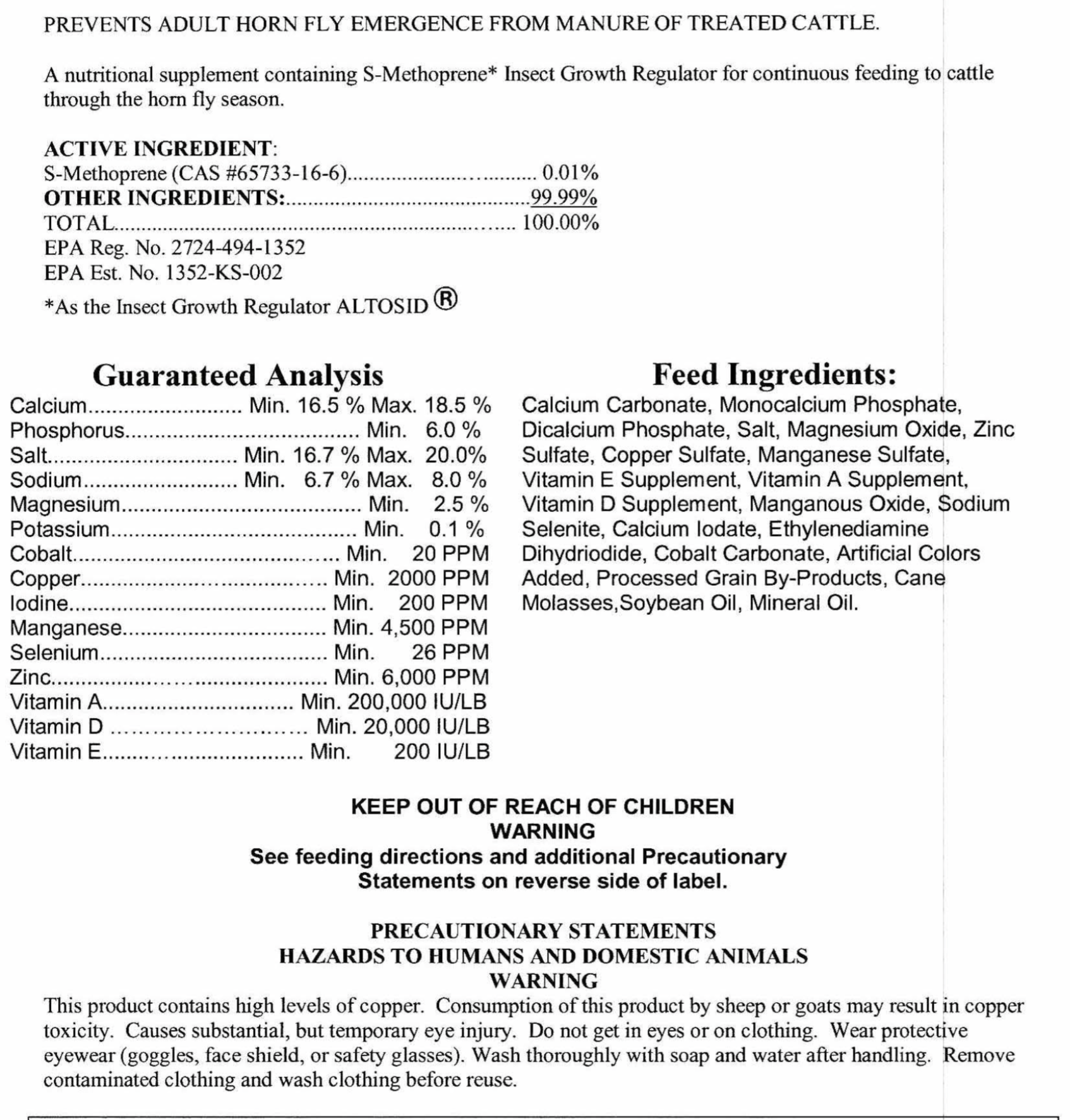 L’étiquette suivante contient la décomposition d’un minéral en vrac qui serait considéré comme ayant un ratio calcium/phosphore de 3:1 et qui peut être utilisé par les producteurs qui nourrissent des fourrages verts à base de céréales.