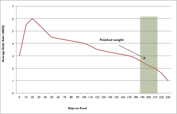 Déterminer le moment auquel un animal a atteint son poids final est un aspect important de l’efficacité alimentaire. Une fois que le taux de gain de l’animal ralentit, la majorité des aliments consommés est convertie en gras résiduel plutôt qu’en viande utilisable et par conséquent, ceci n’est pas rentable. Les producteurs peuvent peser ou surveiller les animaux individuels ou les enclos dans le but de suivre les gains et déterminer le moment auquel le poids final est atteint.