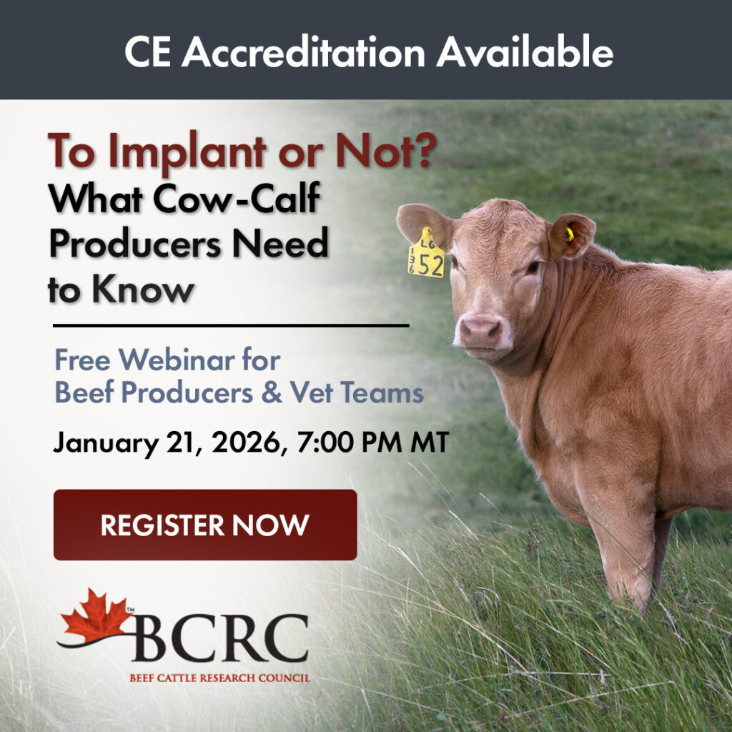 Upcoming Webinar: January 21, 2026To Implant or Not? What Cow-Calf Producers Need to Know Dr. Lauren Younker, TELUS Agriculture, and Betty Green, G7 Ranch